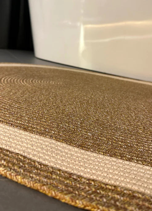 4'lü Bohem Banyo Paspas Takımı Sepetli - 40x60cm + 50x80cm / Hasır Siyah Şeritli