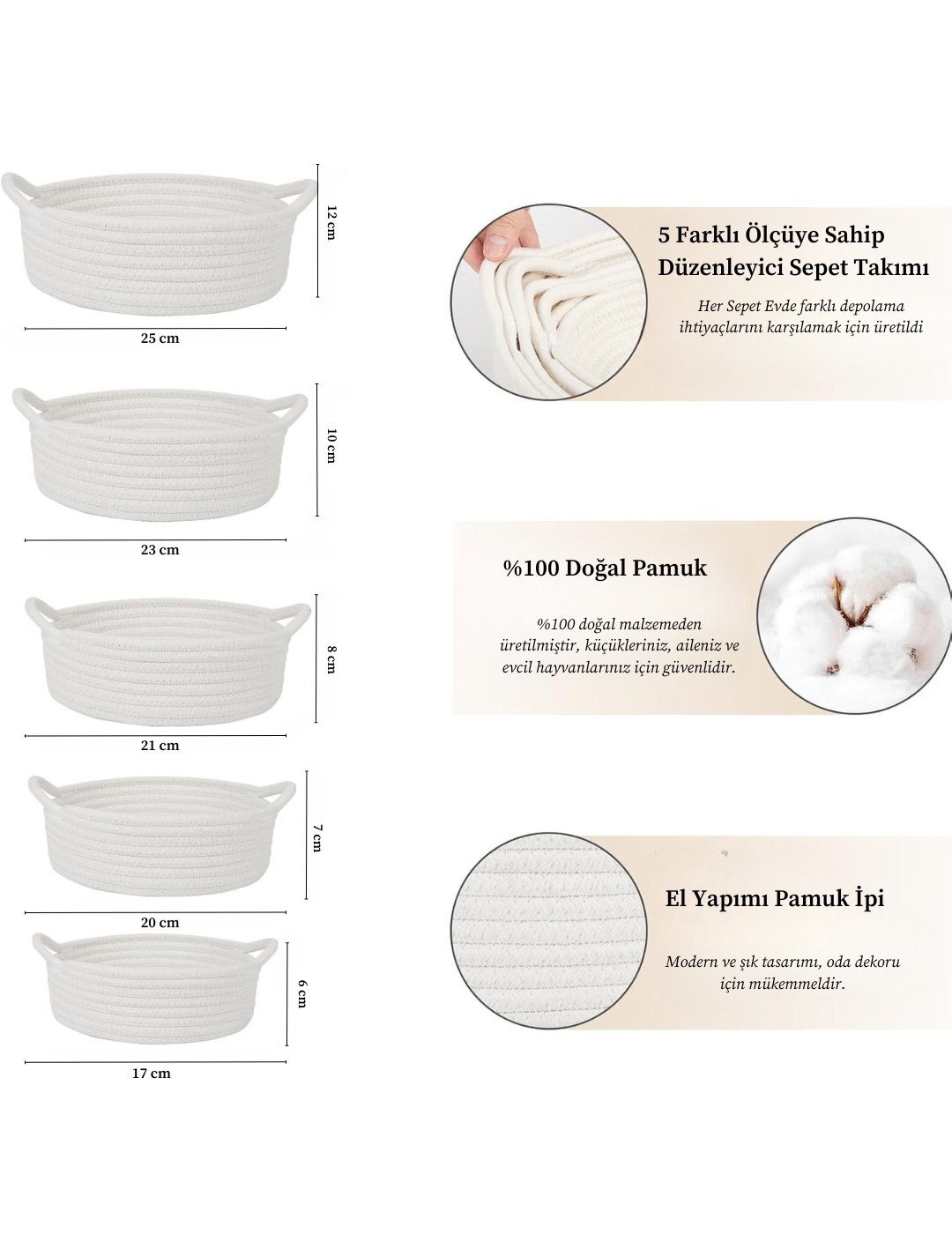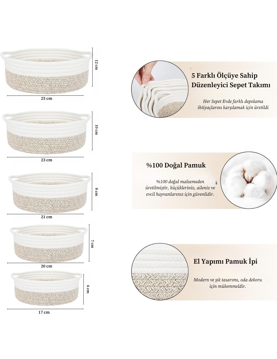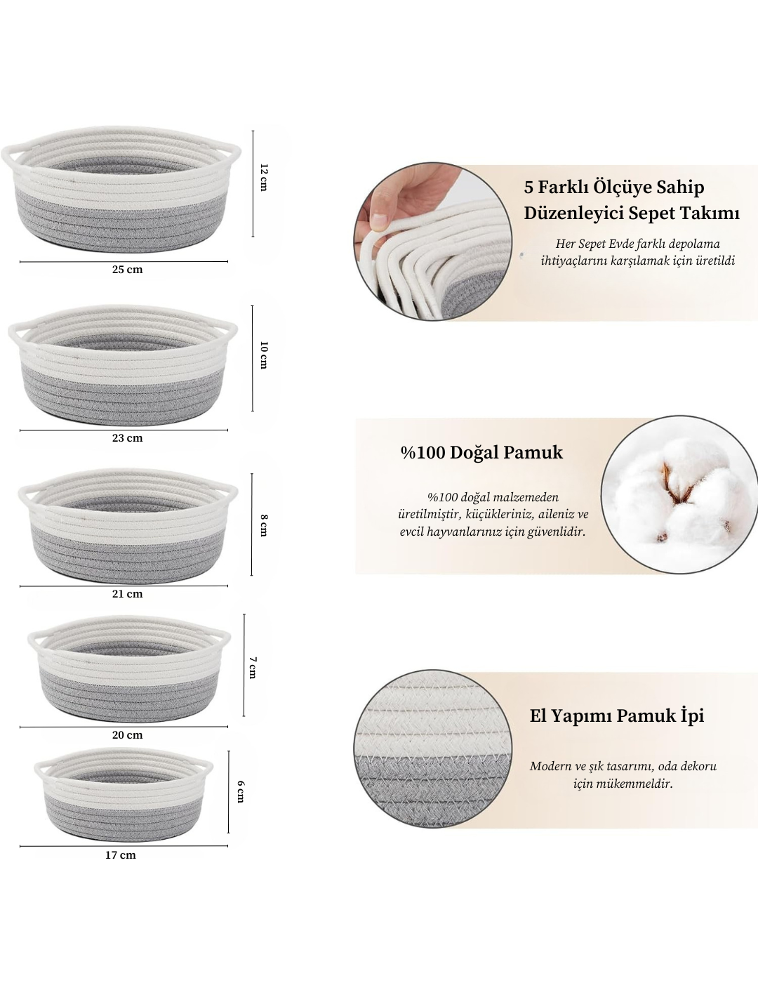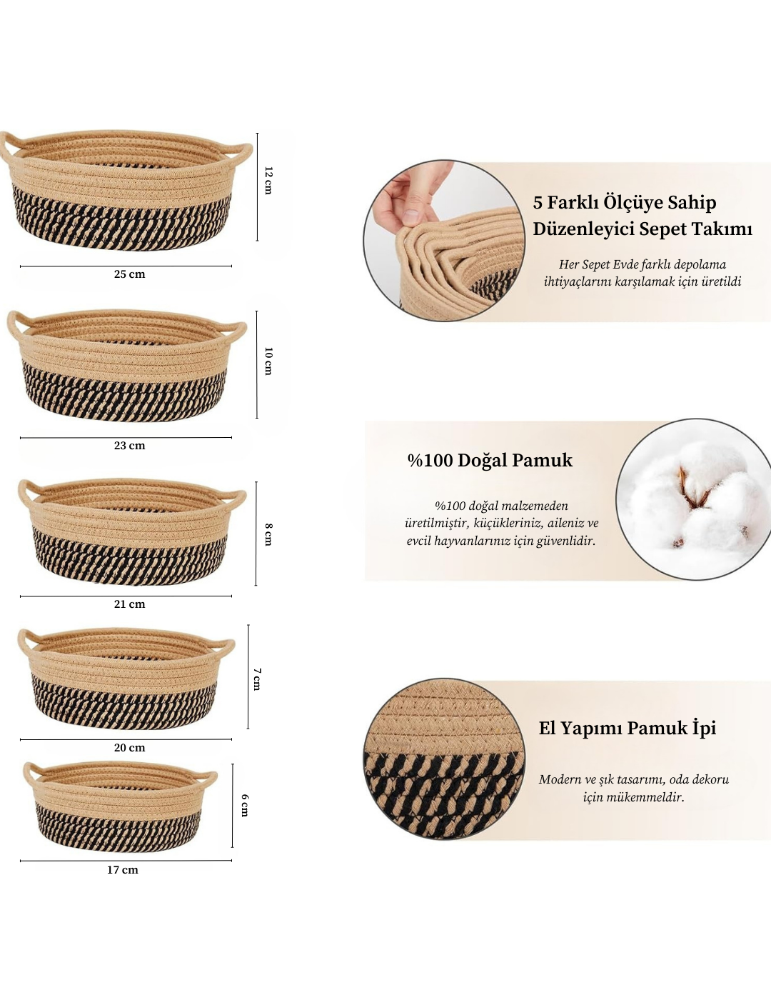 - Evinize bohem bir dokunuş katın! Home Turko 5'li Hasır Sepet Takımı , hem saklama hem de dekorasyon için mükemmel bir çözüm sunuyor. %100 doğal ve dayanıklı üretilen bu şık sepetler, oturma odasından banyoya kadar her alanda düzen sağlar.