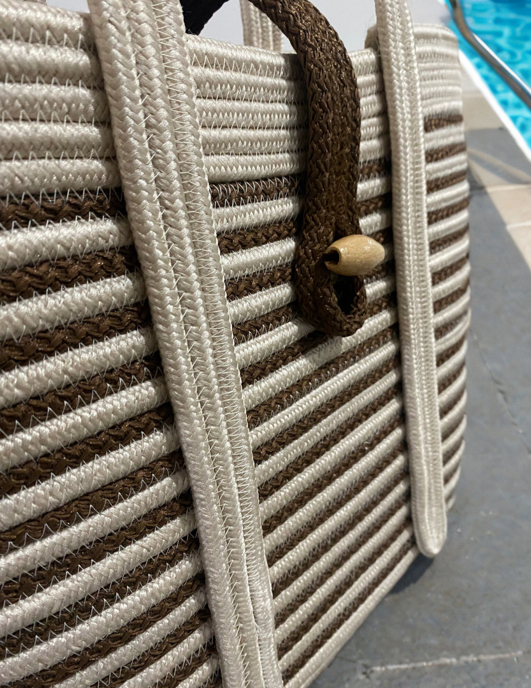 - Jüt polip ip, doğaya dost ve sürdürülebilir bir malzemedir. Bu sayede plaj çantanızla hem şık görünür hem de çevreye katkıda bulunursunuz.