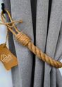 El örgüsü doğal jüt ipinden üretilmiş bu perde tokası, perdelerinizi şık bir şekilde toplamanızı sağlar. Doğal ve bohem tarzı sevenler için ideal bir seçimdir.