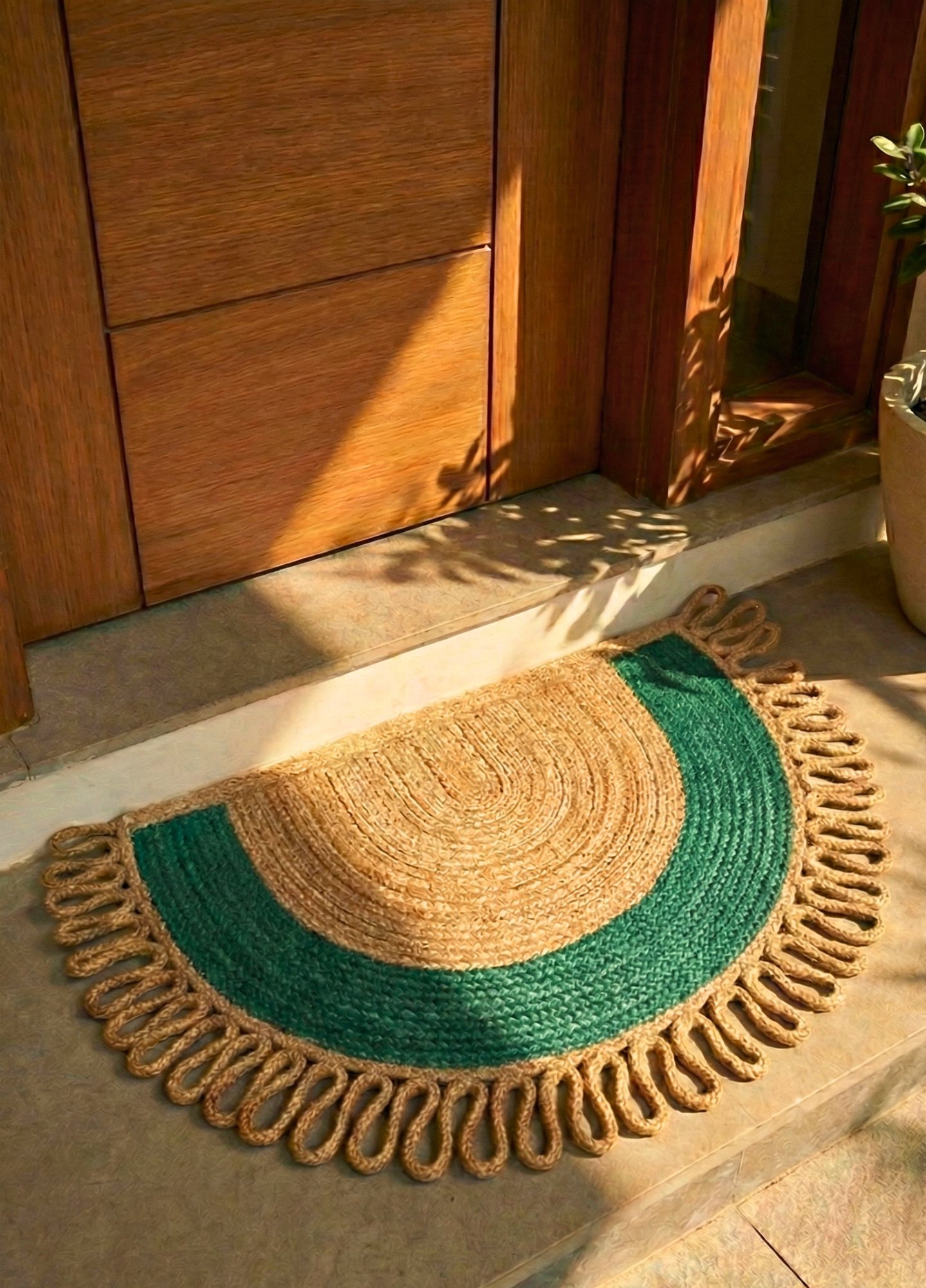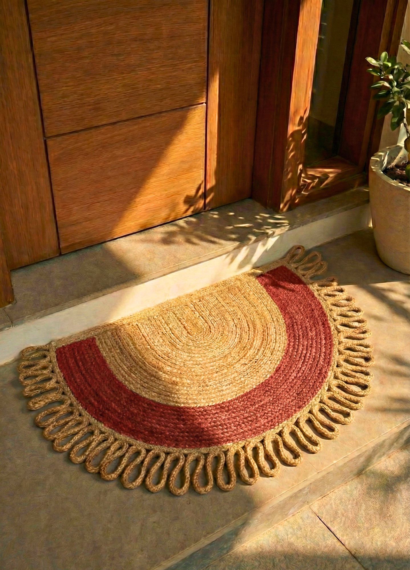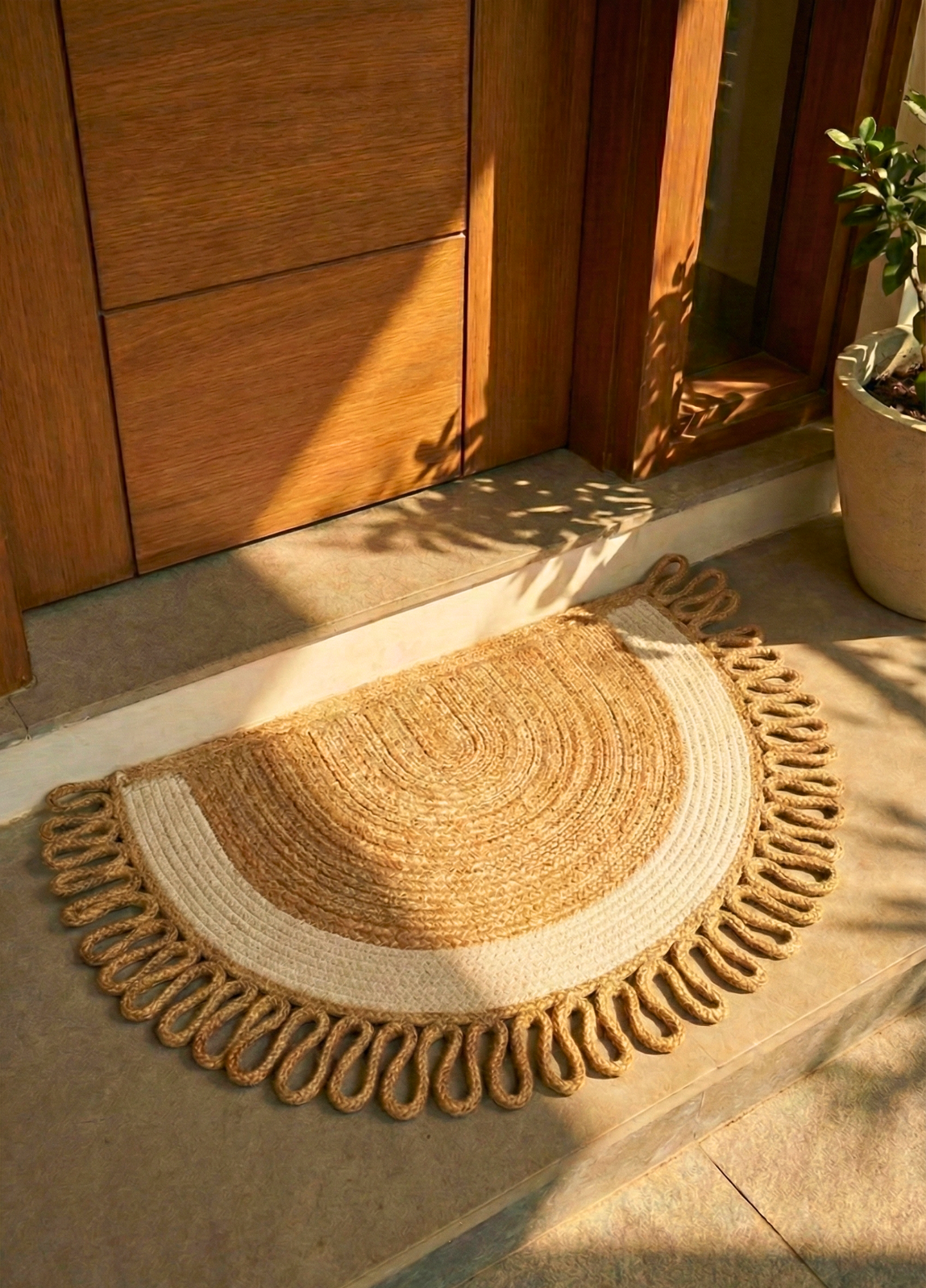 LunaLoop Yarım Ay Jüt Paspas El Yapımı Kapı Önü Banyo Balkon Kilimi