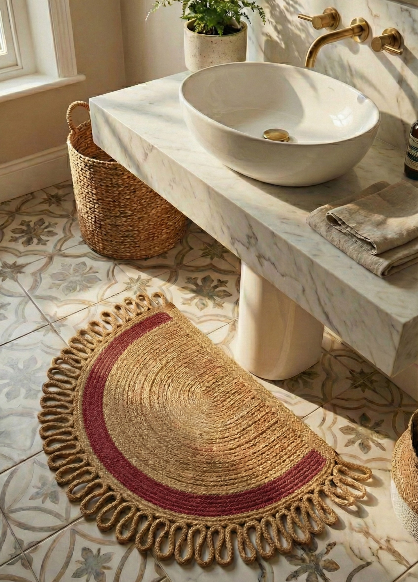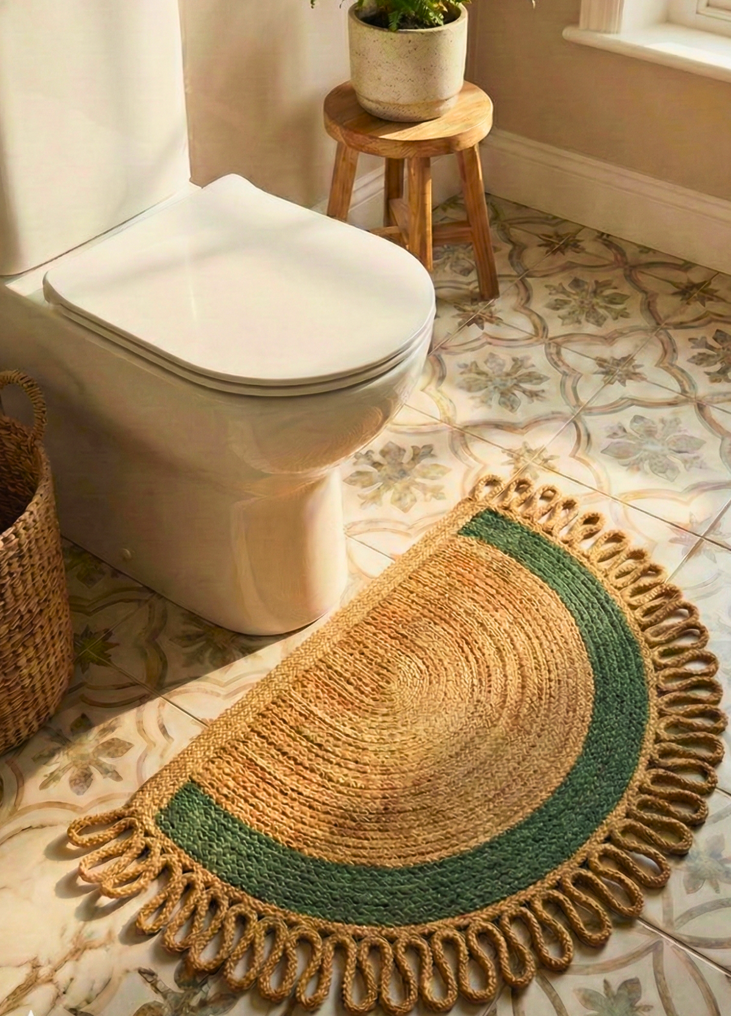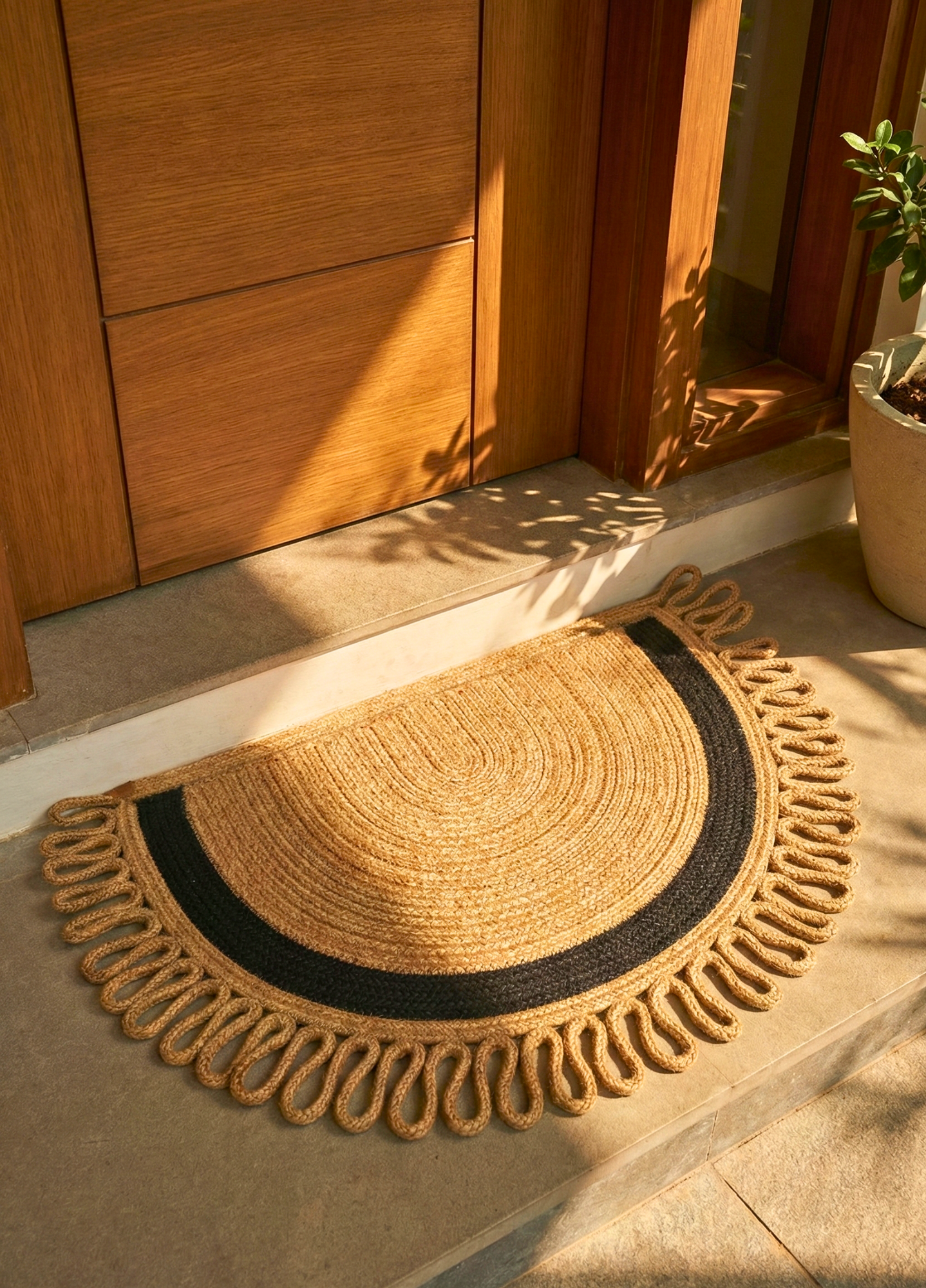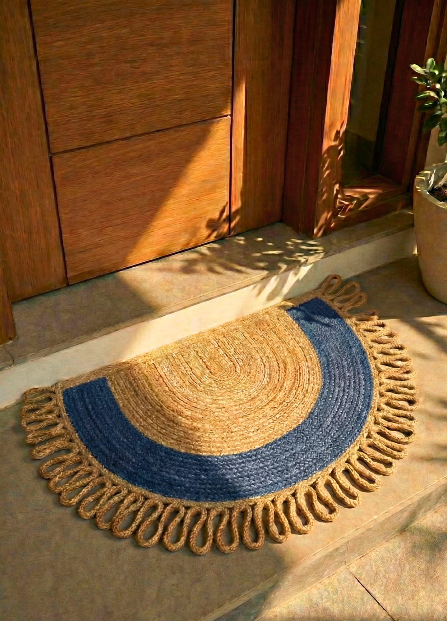 LunaLoop Yarım Ay Jüt Paspas El Yapımı Kapı Önü Banyo Balkon Kilimi