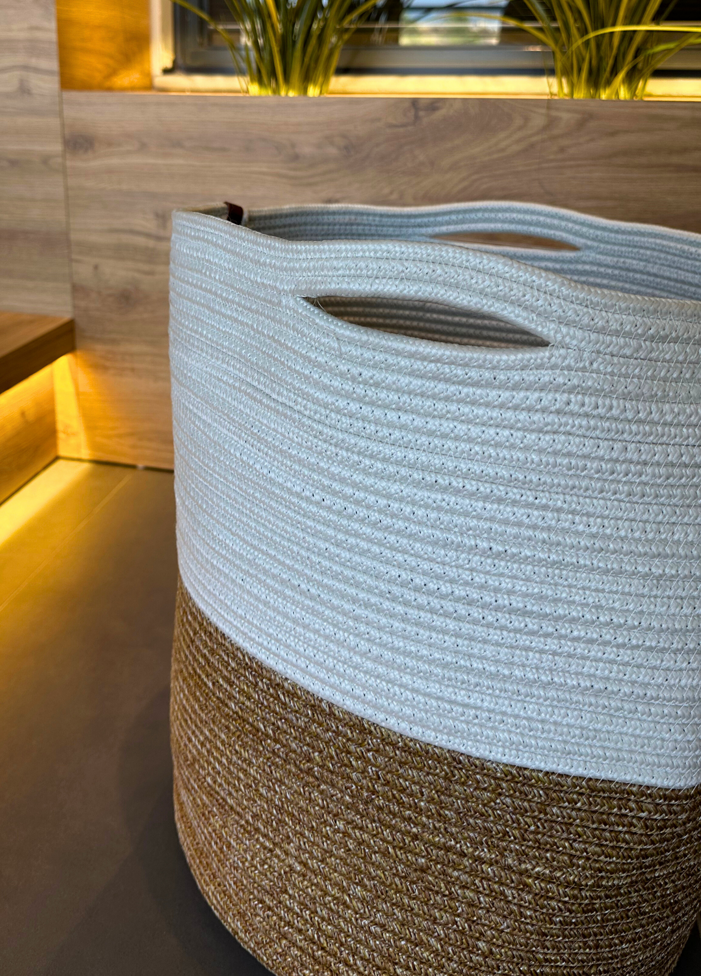 - Storing your laundry neatly and stylishly is now easier and more aesthetically pleasing. Crafted from natural and durable jute fabric, our laundry basket will complement your home decor with its practical use and elegant design.