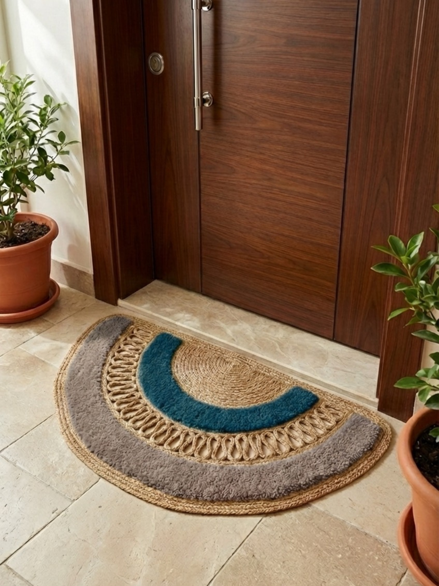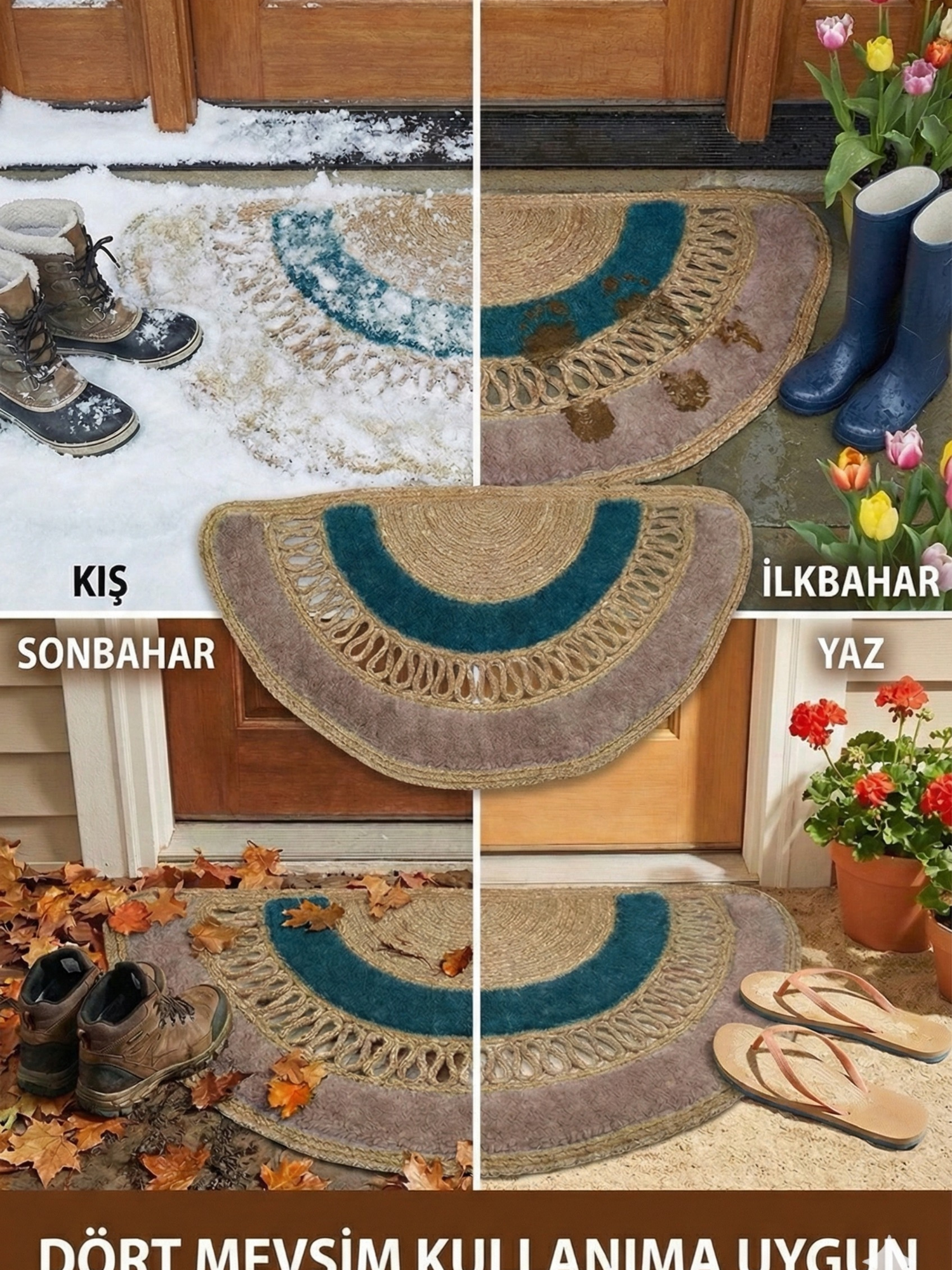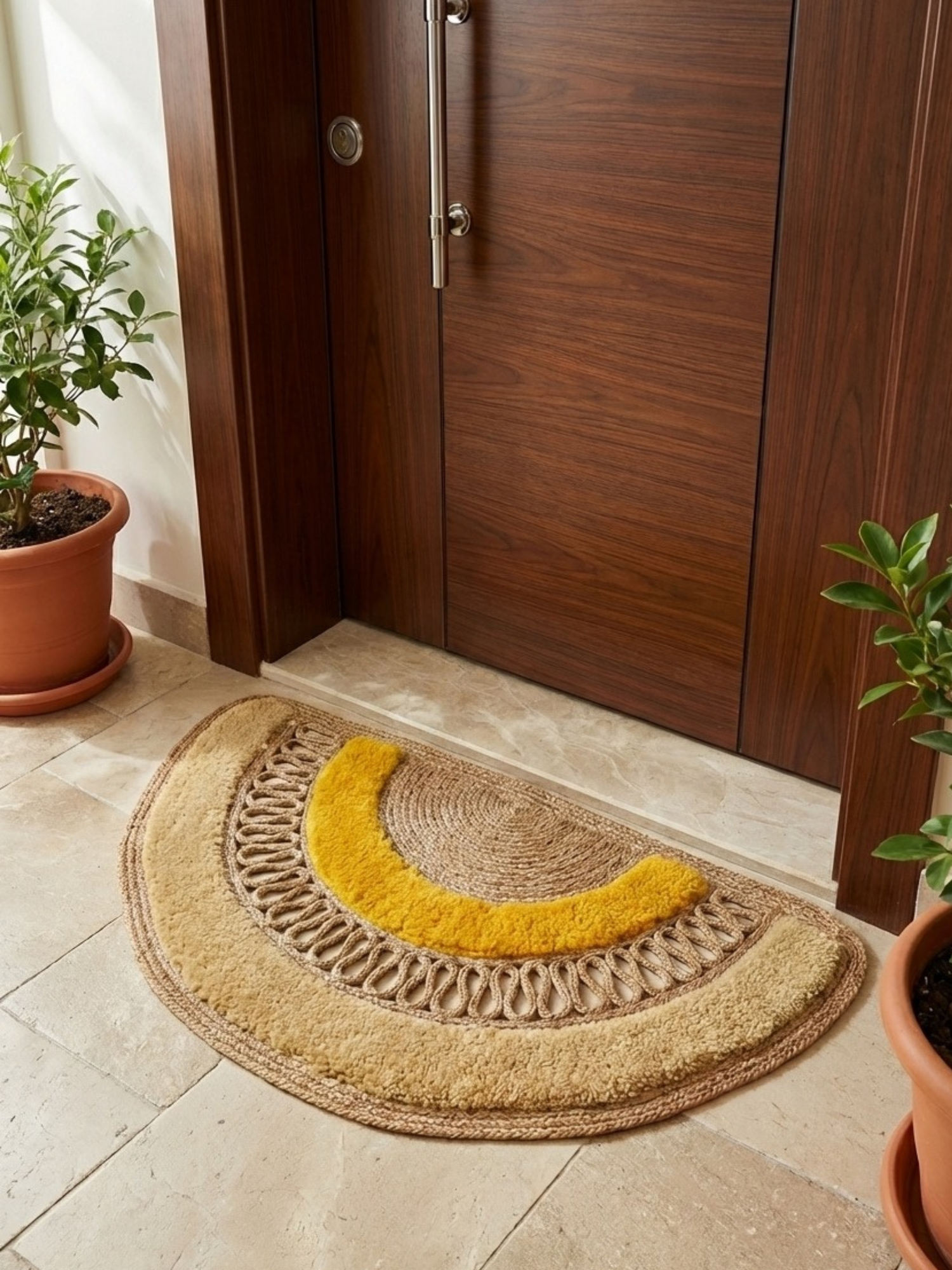 Dünyada İlk! Artisan Glow Yarım Ay Tufting Şeritli Jüt Kapı Önü Paspası