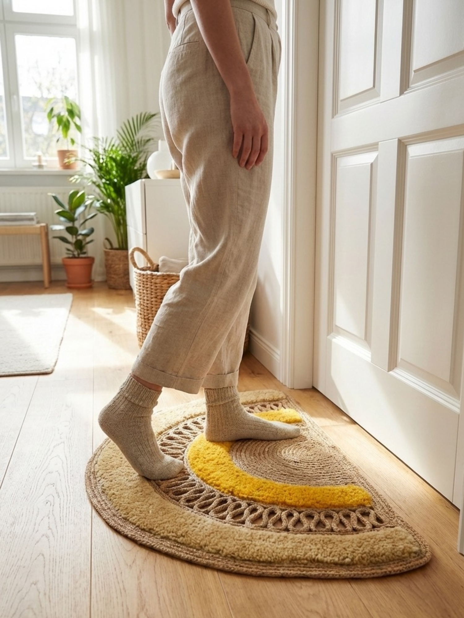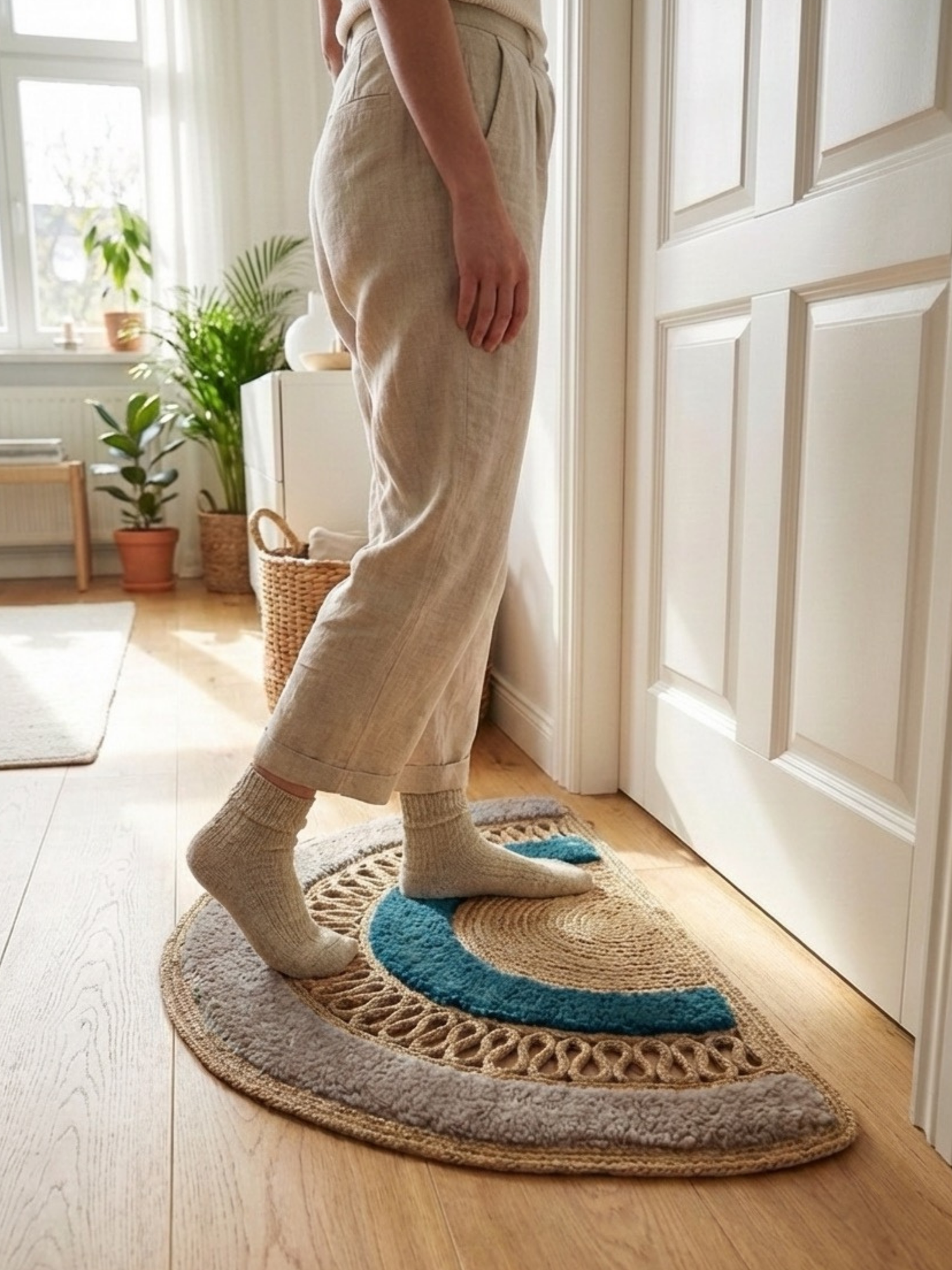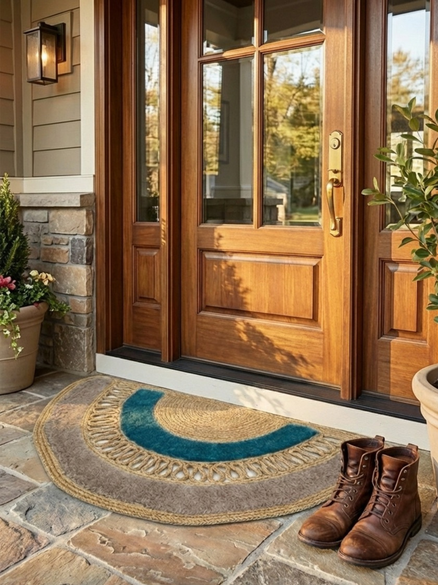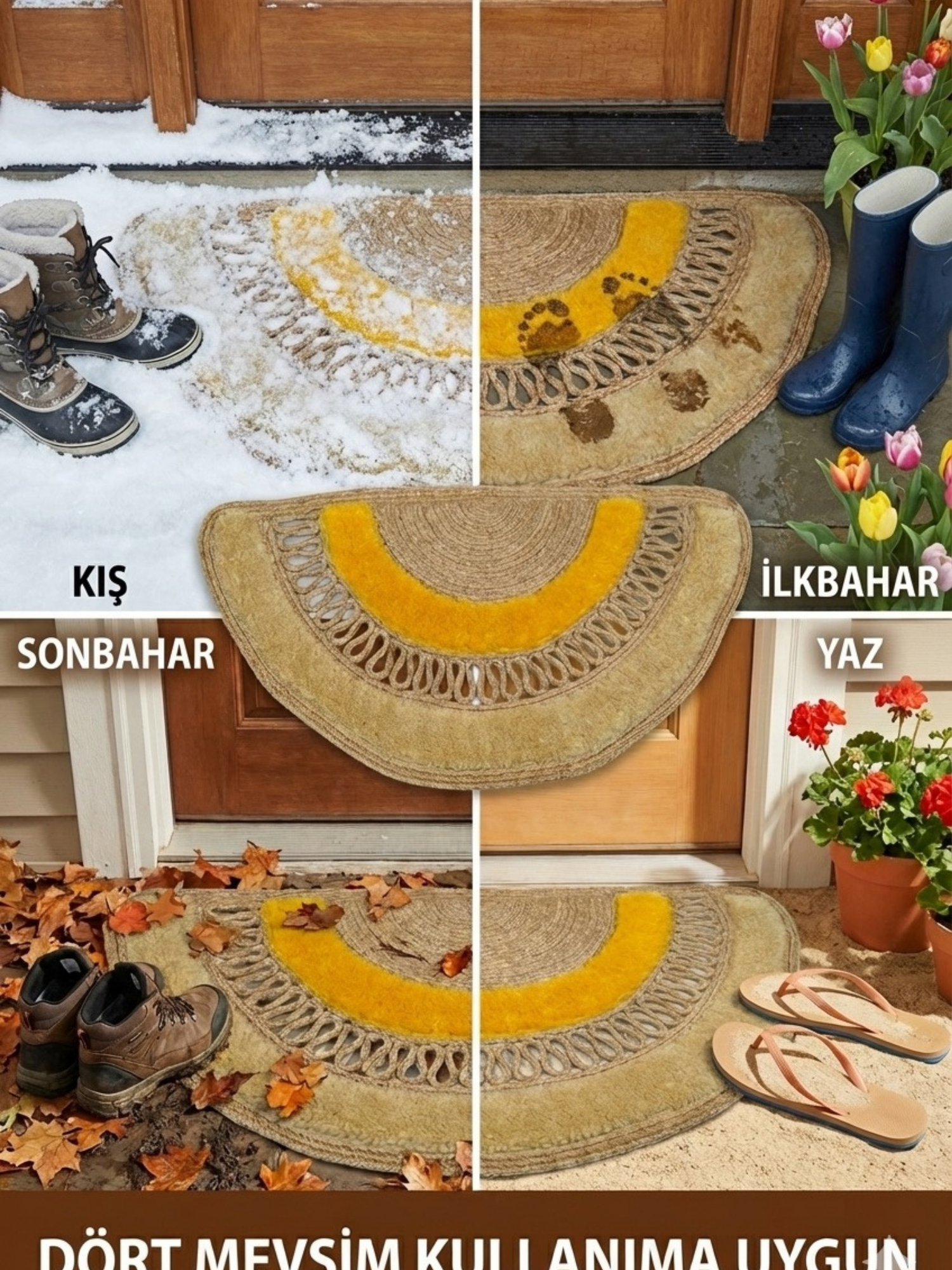 Dünyada İlk! Artisan Glow Yarım Ay Tufting Şeritli Jüt Kapı Önü Paspası