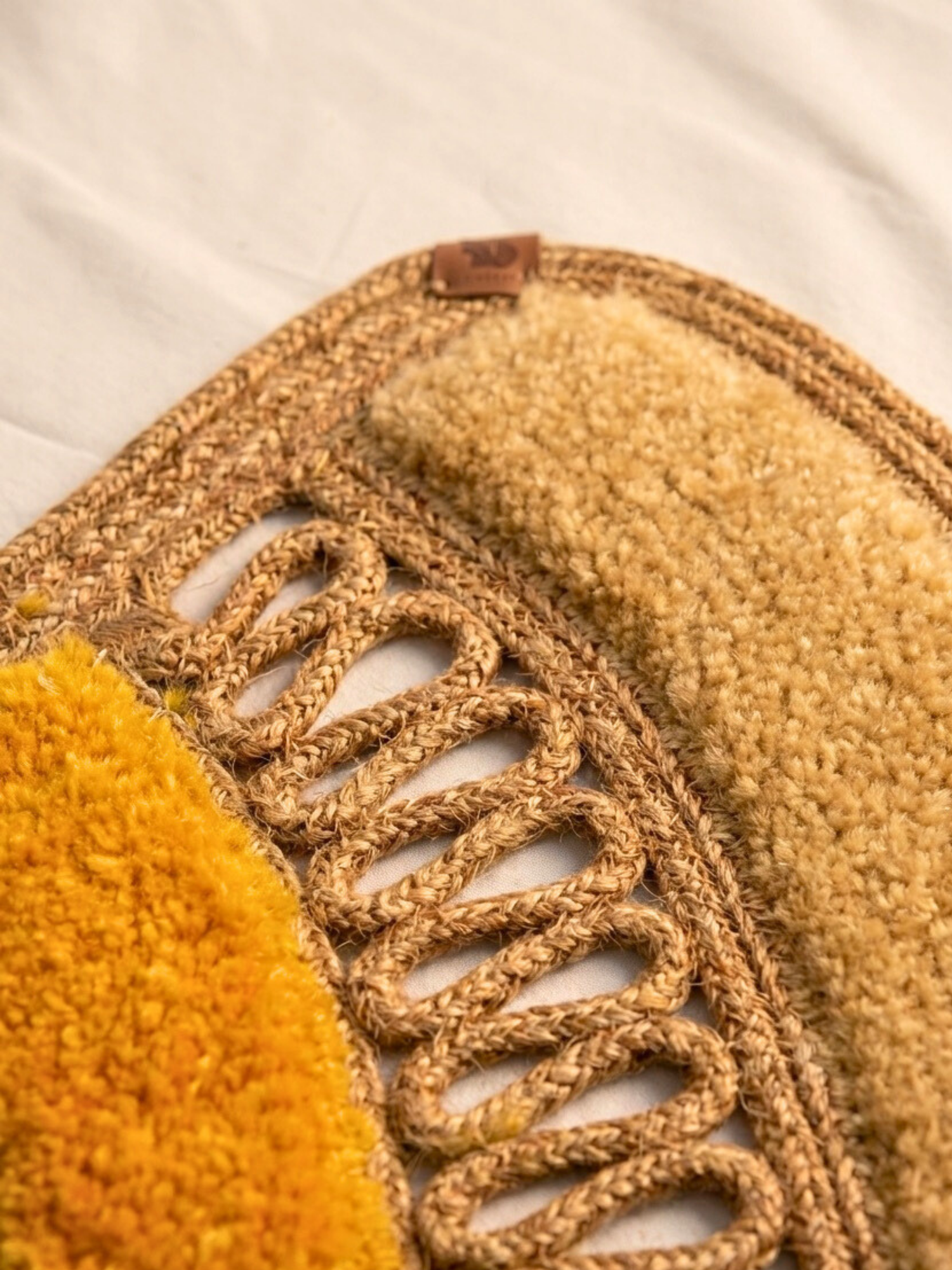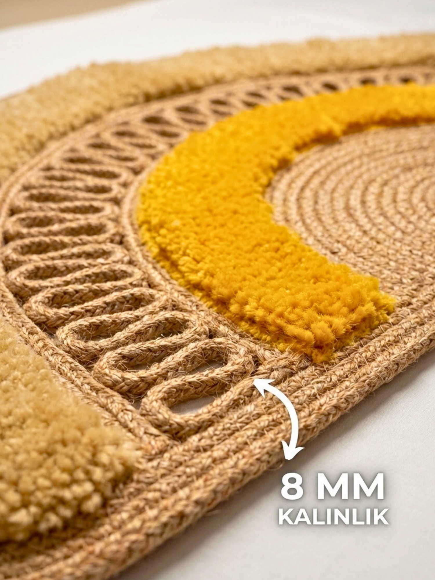 Bu özel paspas, geleneksel jüt dokumacılığını modern tufting sanatı ile birleştirerek ortaya çıktı. Doğanın gücünü ve sıcaklığını yaşam alanlarınıza taşıma arzusuyla yola çıktık. Dünyada bir ilk olan bu yenilikçi tasarımda, dayanıklı doğal jüt lifleri özenle örüldü ve üzerine enerjik bir yarım ay motifi, yumuşak tufting şerit tekniğiyle eklendi. Her bir paspas, zanaatkarlarımızın elinde, sadece bir karşılama matı değil, aynı zamanda ruhu olan bir sanat eseri olarak hayat buldu. Evinizin eşiğine attığınız ilk adımda size sıcak bir "Hoş Geldiniz" demesi için tasarlandı.