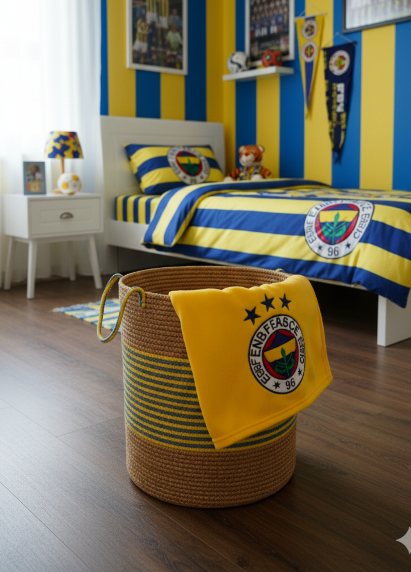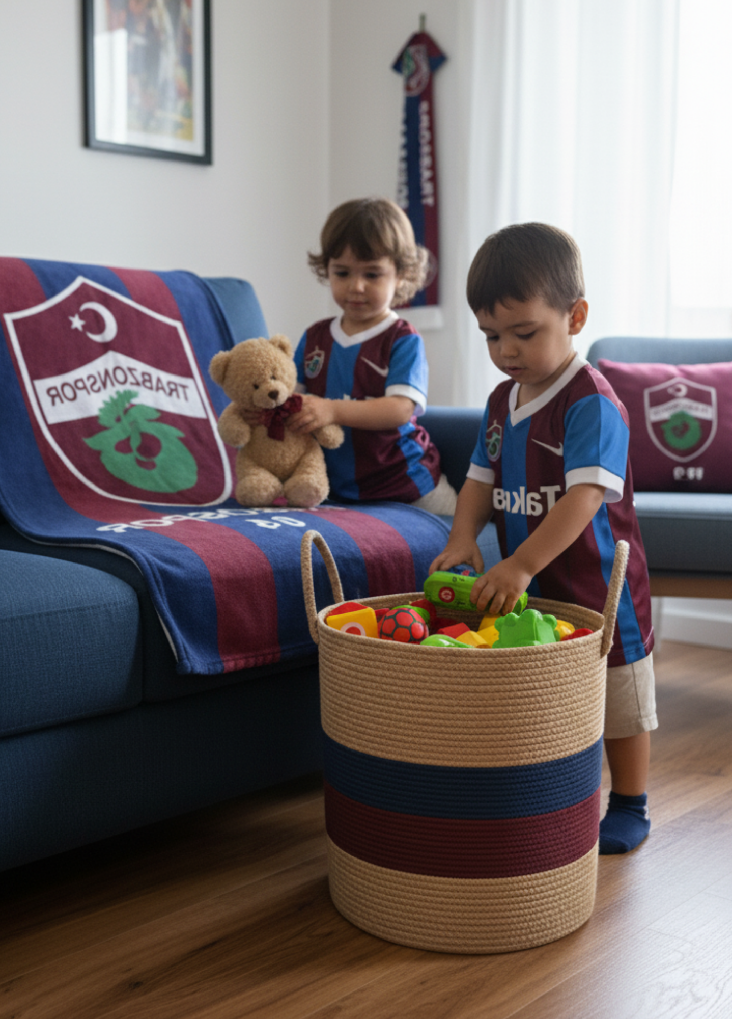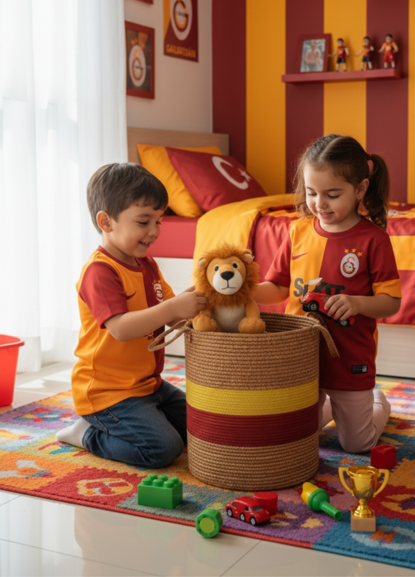 Handmade Jute Team Basket | Decorative and Multi-Purpose Storage Basket in Fan Colors - HASIR-SARI KIRMIZI / 35 x 45 cm is backordered and will ship as soon as it is back in stock.