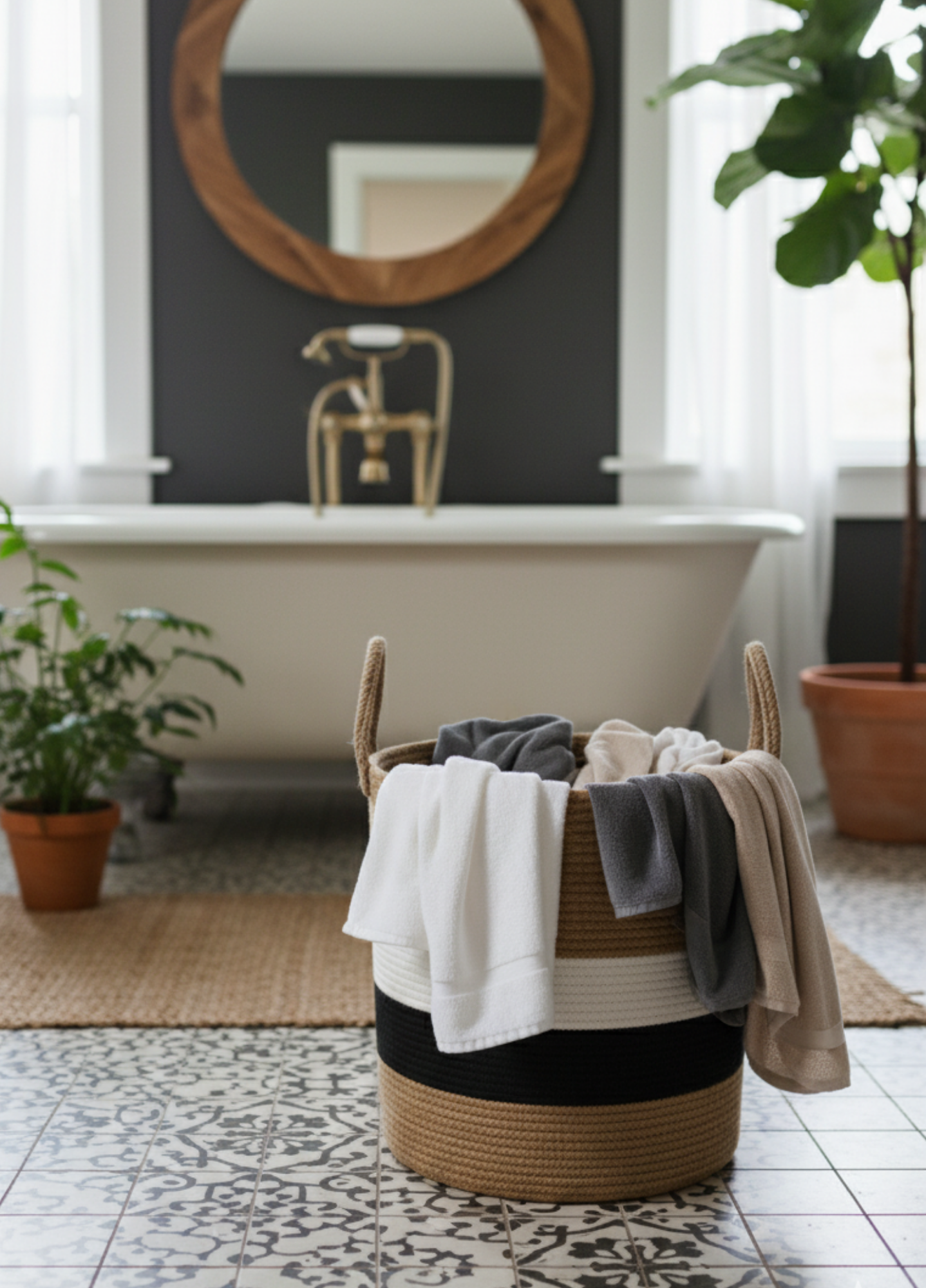 Handcrafted with jute knitted texture The tool baskets collection brings together both order and passion.